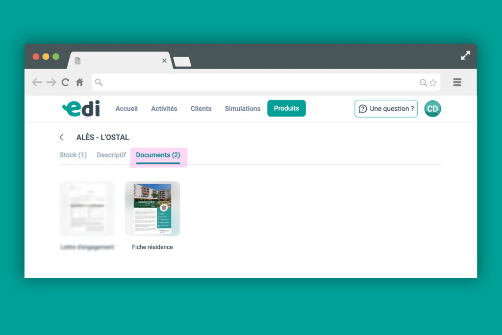 Rendez-vous dans l’espace Produits, Marché secondaire. Sélectionnez la résidence puis cliquez sur l’onglet « Documents ».